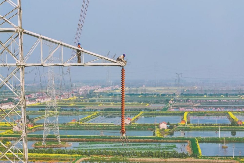 近期,湖北经历了两轮雨雪冰冻天气,为保障电网安全稳定运行,3月12日,国网湖北超高压公司组织员工登上500千伏江桃线168号铁塔更换绝缘子。