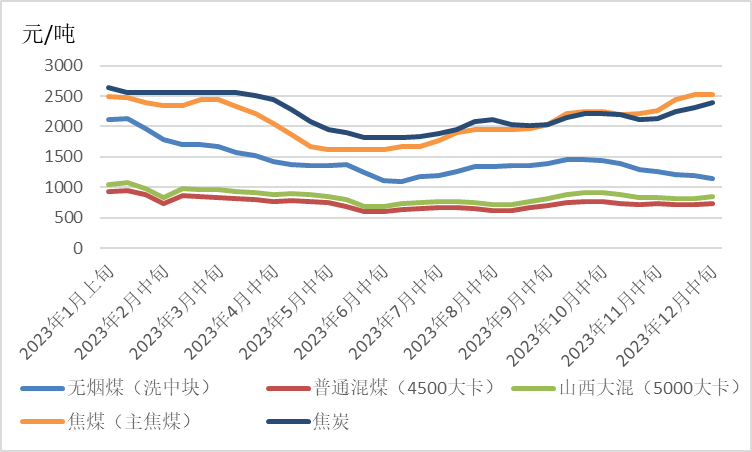 图8 2023年全国煤炭市场价格变化情况(数据来源:国家统计局)