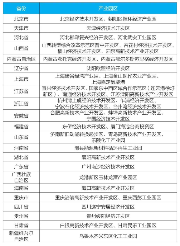 产业园区试点名单