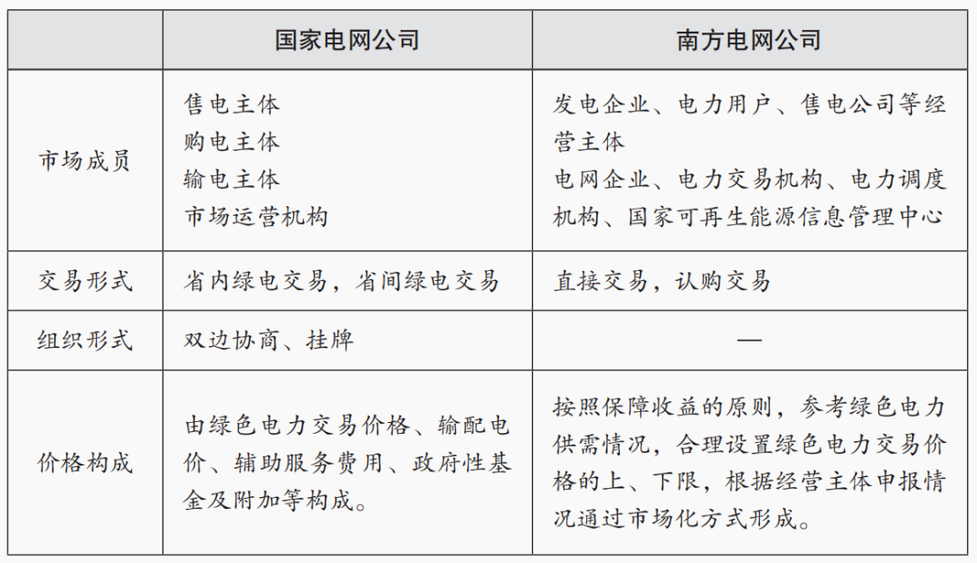 从两份文件来看,其相同之处在于都对绿色电力、绿色电力交易的适用范围、绿色电力市场参与方、交易方式、交易流程等内容进行了明确定义,同时对“优先组织未纳入国家可再生能源电价附加补助政策范围内的风电和光伏电量参与交易”进行强调,并根据经营区域的不同发展特色在多个细节体现差异。
