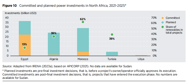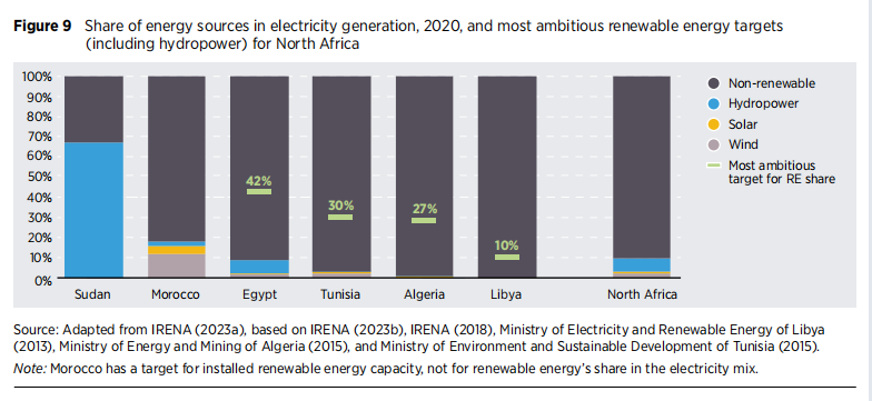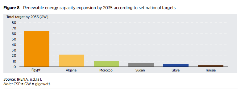 部分北非国家在可再生能源的促进上作出了重要的努力,是全球气候论坛的积极参与者,并致力于推动可再生能源的发展与目标的设定。例如,摩洛哥主办了2016年的联合国气候变化大会(COP22),埃及在2022年主办了COP27。认识到可再生能源在可持续发展和工业化以及潜在的社会经济利益中的重要作用,北非地区已经制定了相关区域和国家的可再生能源计划与承诺。