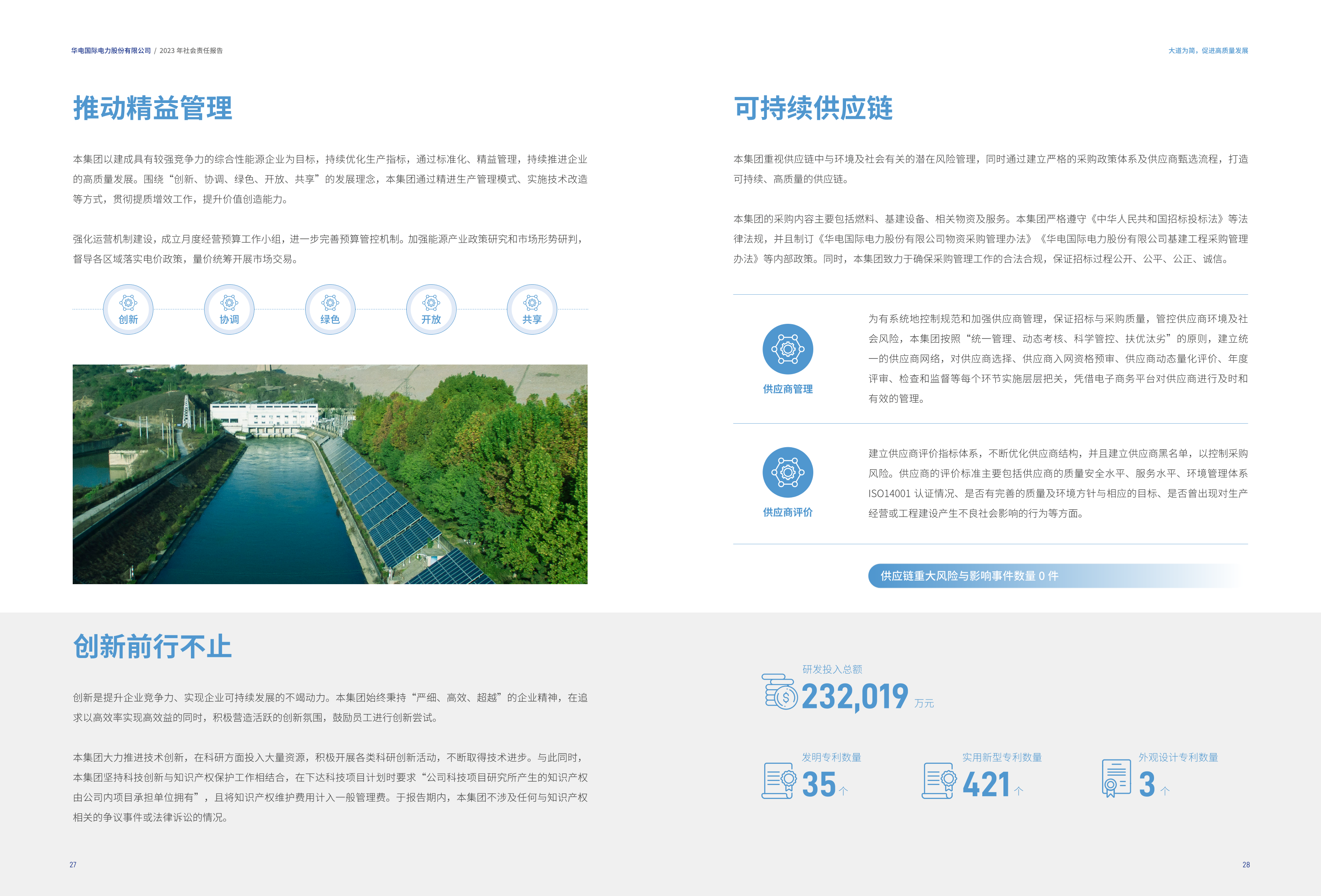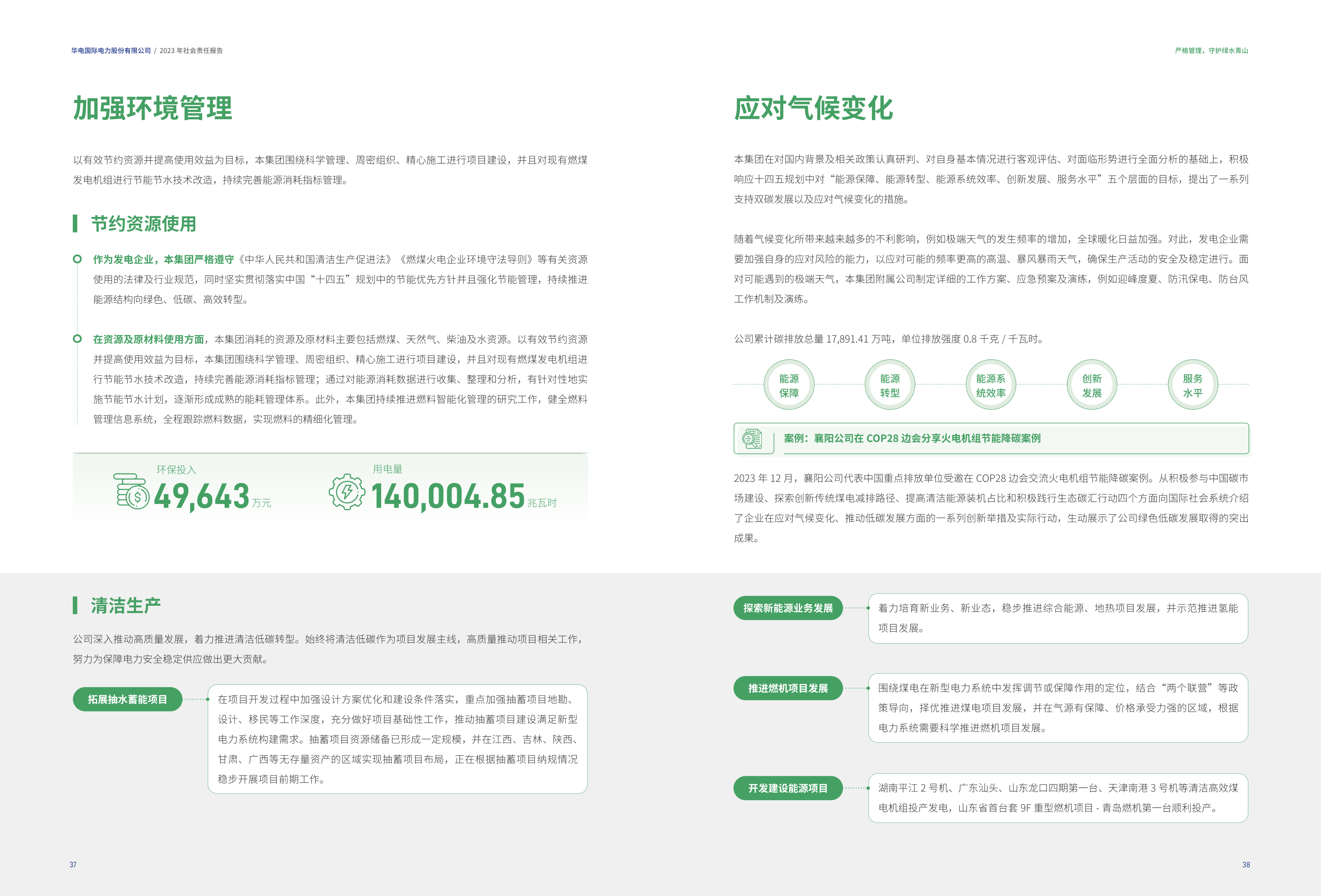 日前,华电国际发布2023年社会责任报告(ESG)。据披露,华电国际累计碳排放总量17,891.41万吨,单位排放强度0.8千克/千瓦时。环保投入49,643万元,用电量140,004.85兆瓦时。