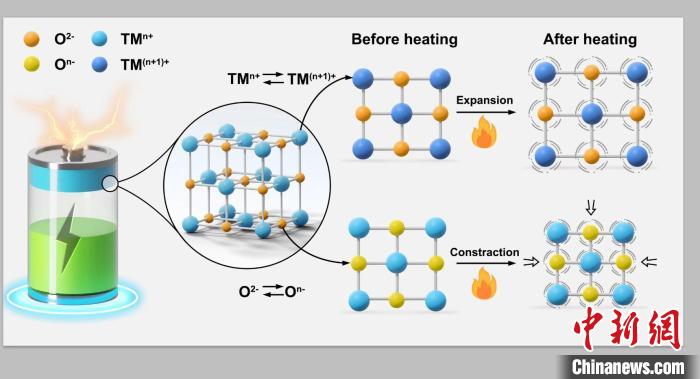 如何有效解决这一问题?论文第一作者、中国科学院宁波材料所邱报副研究员介绍说,在本项研究中,研究团队揭示出富锂锰基正极材料的有趣性质:它在受热时反而收缩,即“负热膨胀”。