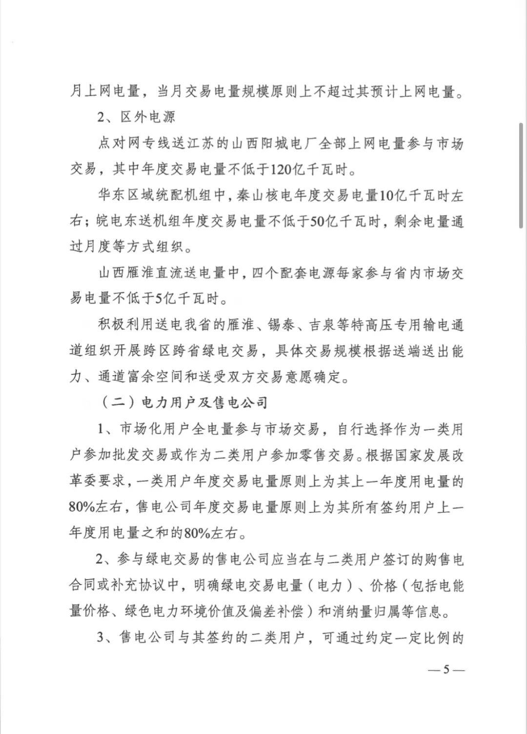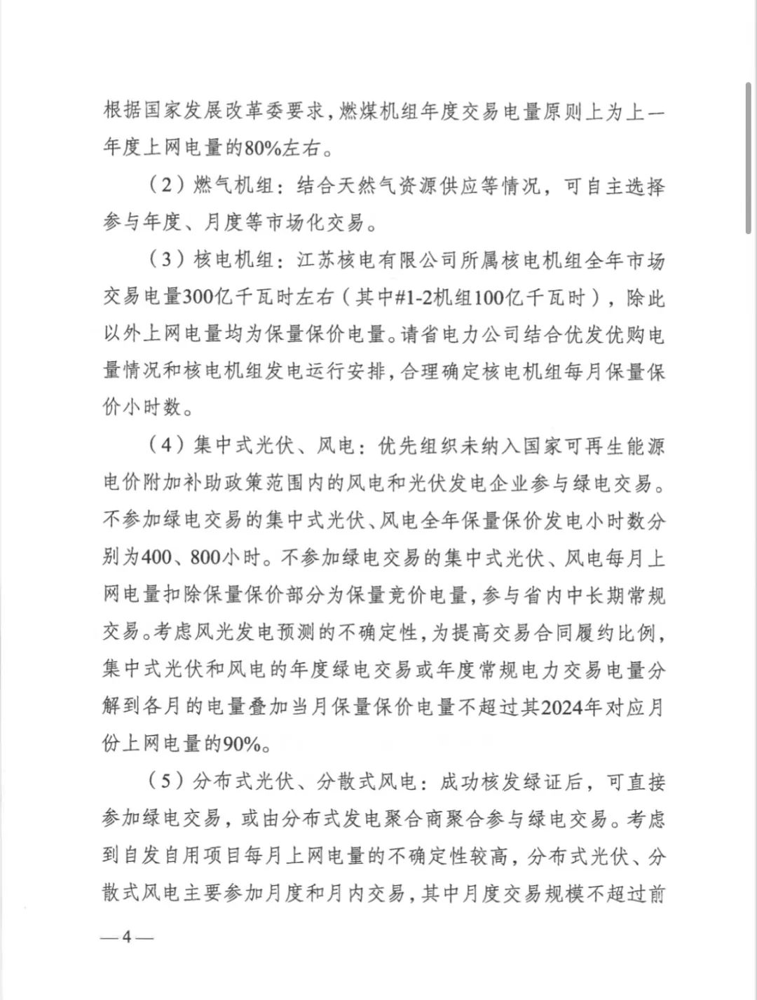◆不参加绿电交易的集中式光伏、风电全年保量保价发电小时数分别为400、800小时。