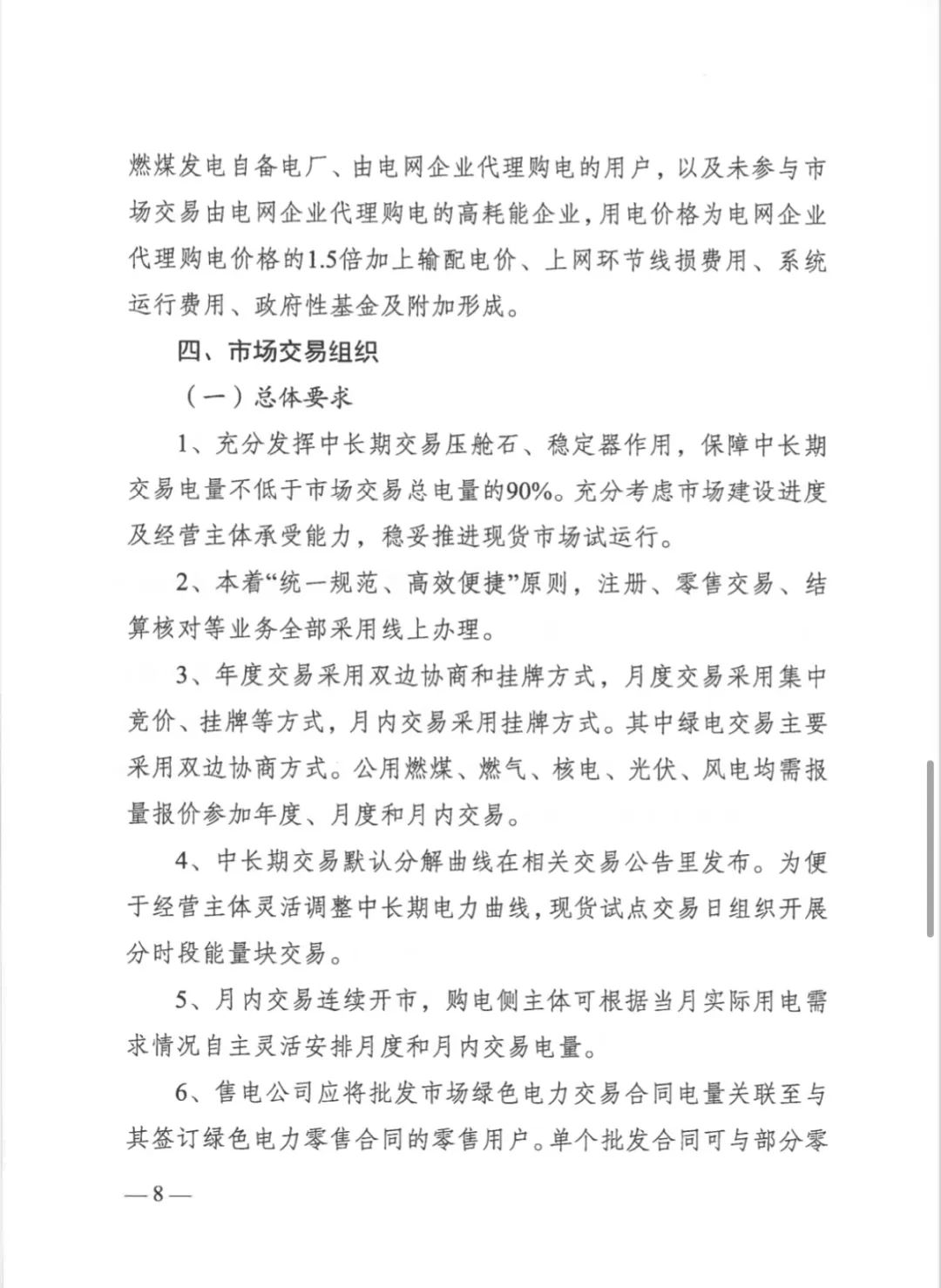 ◆不参加绿电交易的集中式光伏、风电每月上网电量扣除保量保价部分为保量竞价电量,参与省内中长期常规交易。