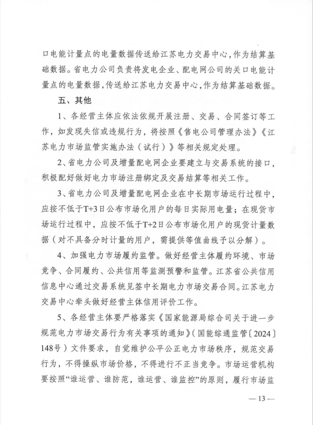 12月4日,江苏发布关于开展2025年电力市场交易工作的通知。通知明确了2025年新能源参与电力市场交易的相关规定。其中文件指出,虚拟电厂、独立储能等新型主体可按有关政策规定,在江苏省电力交易中心办理注册手续,并参与市场交易。
