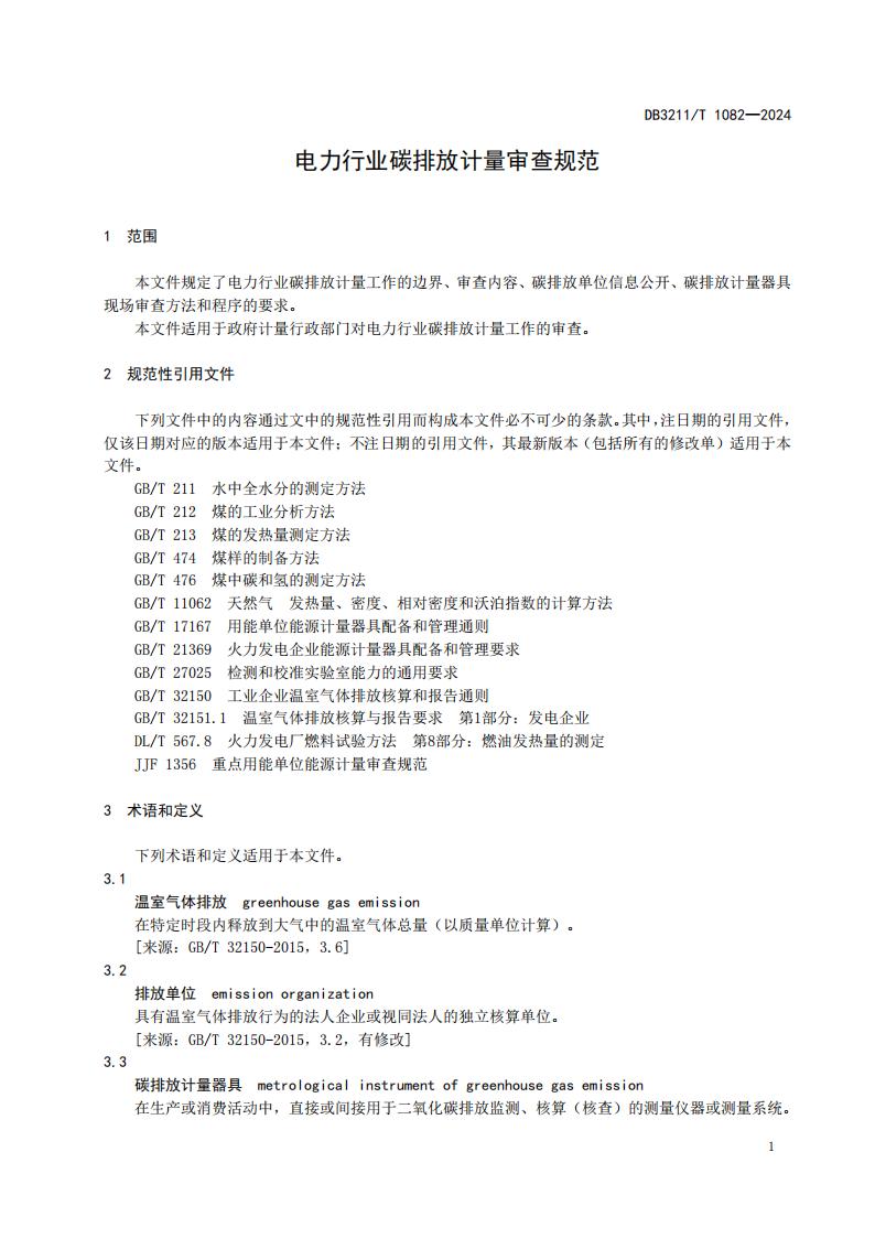 近日,《电力行业碳排放计量审查规范》(DB3211/T1082-2024)地方标准正式发布。