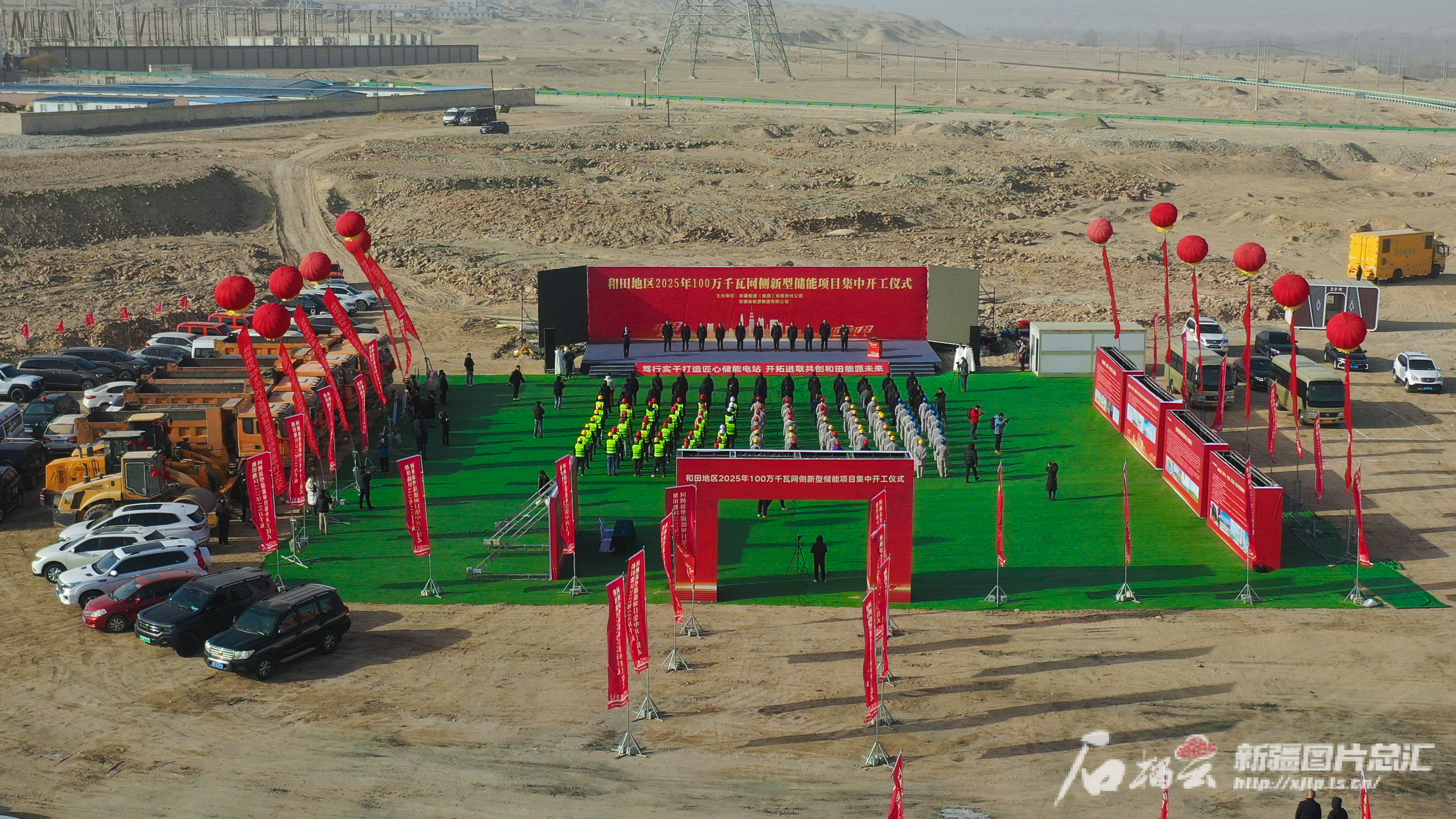 2月8日上午,和田地区2025年100万千瓦网侧新型储能项目集中开工仪式在和田县朗如乡新疆立新能源股份有限公司30万千瓦储能项目实施地举行。甄立民摄