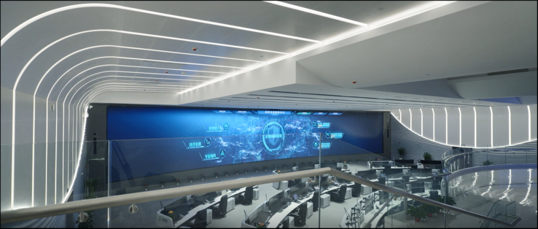 大厅的流线型设计象征着电网的互联互通。针对调度员日常工作的操作区域,通过精心规划的色彩搭配与空间布局,显著提升了空间的美学价值和舒适性,为调度员打造了一个舒适宜人的工作环境。