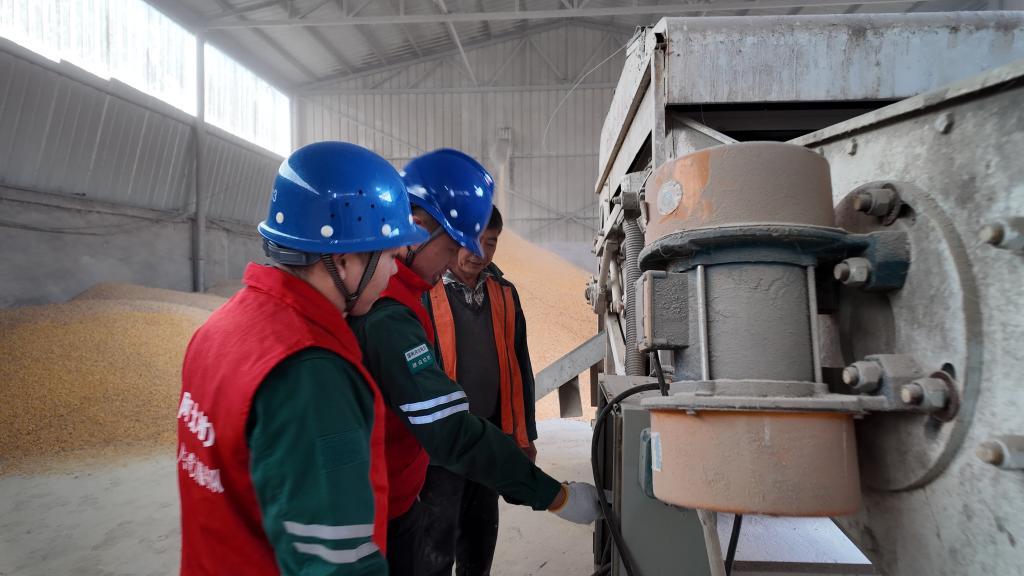 河北省电力工人对烘干机、脱粒机等农业设备开展用电安全隐患排查。新华社记者王昆摄
