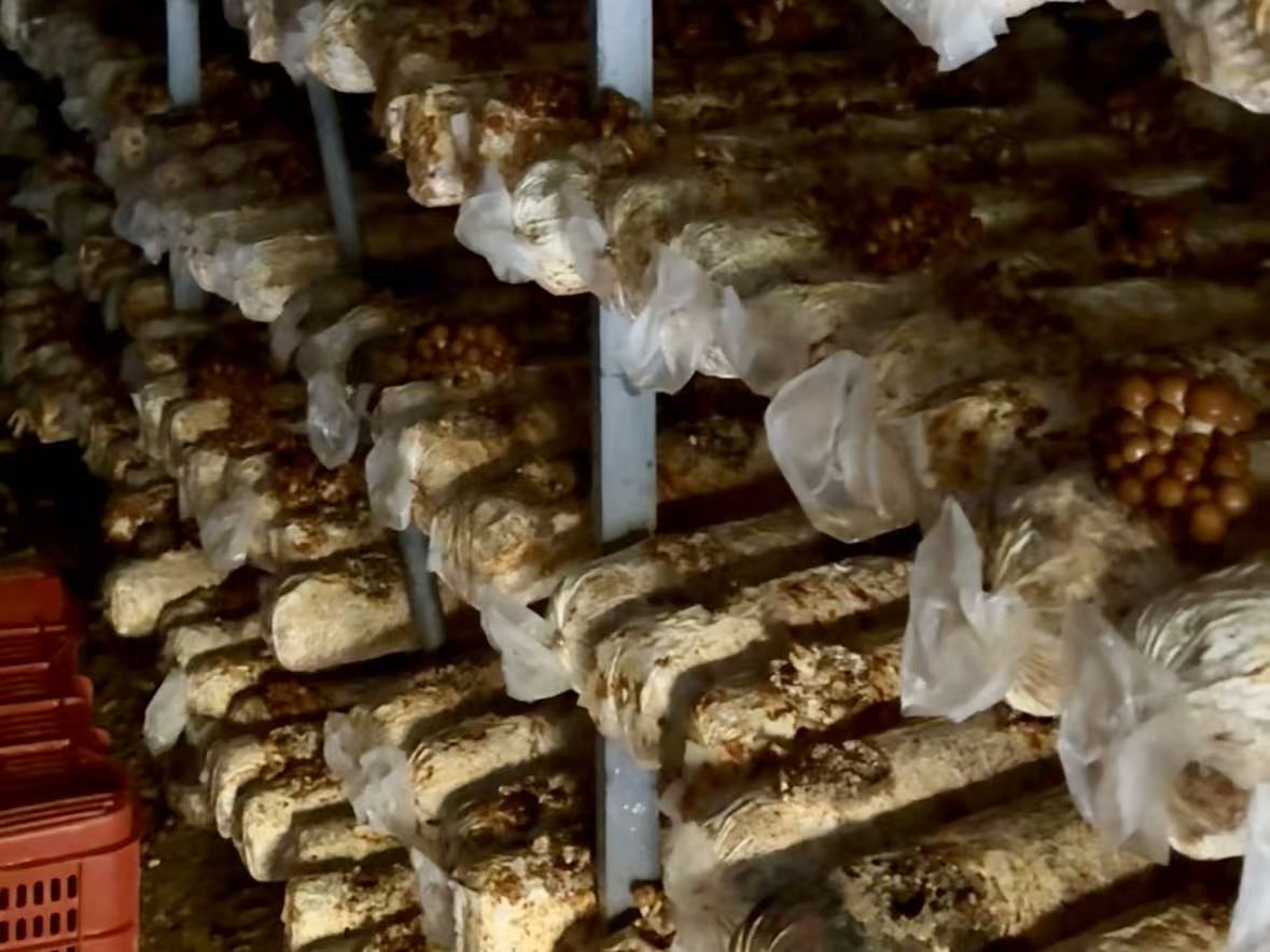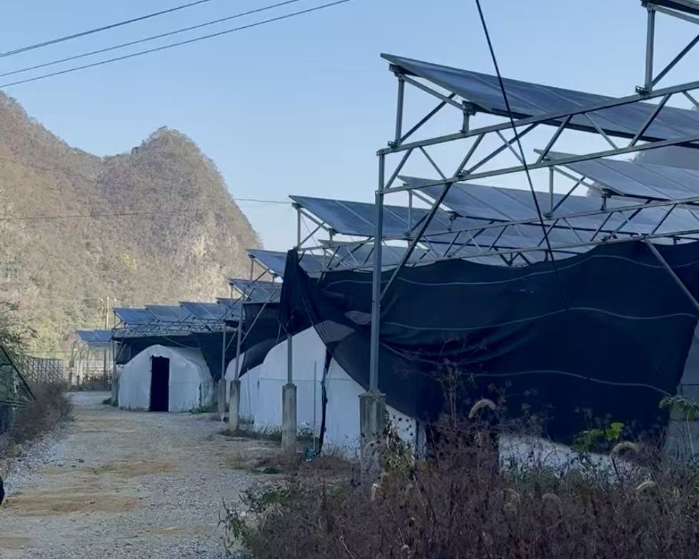 不远处,光伏板覆盖的新型大棚格外惹眼。“这是‘菌光互补’示范项目,既能发电能给菌棒恒温环境。”现任驻村第一书记邓金鑫指着光伏板介绍,这个由贵州电网公司捐赠25万元建设的项目,把土地“上下空”都用活了,棚上光伏板吸收阳光发电,棚下恒温22-25摄氏度适配菌棒生长。菌棒成活率从原来的96%提升到99.35%,光伏板还能抵御极端天气,延长大棚寿命5年以上。