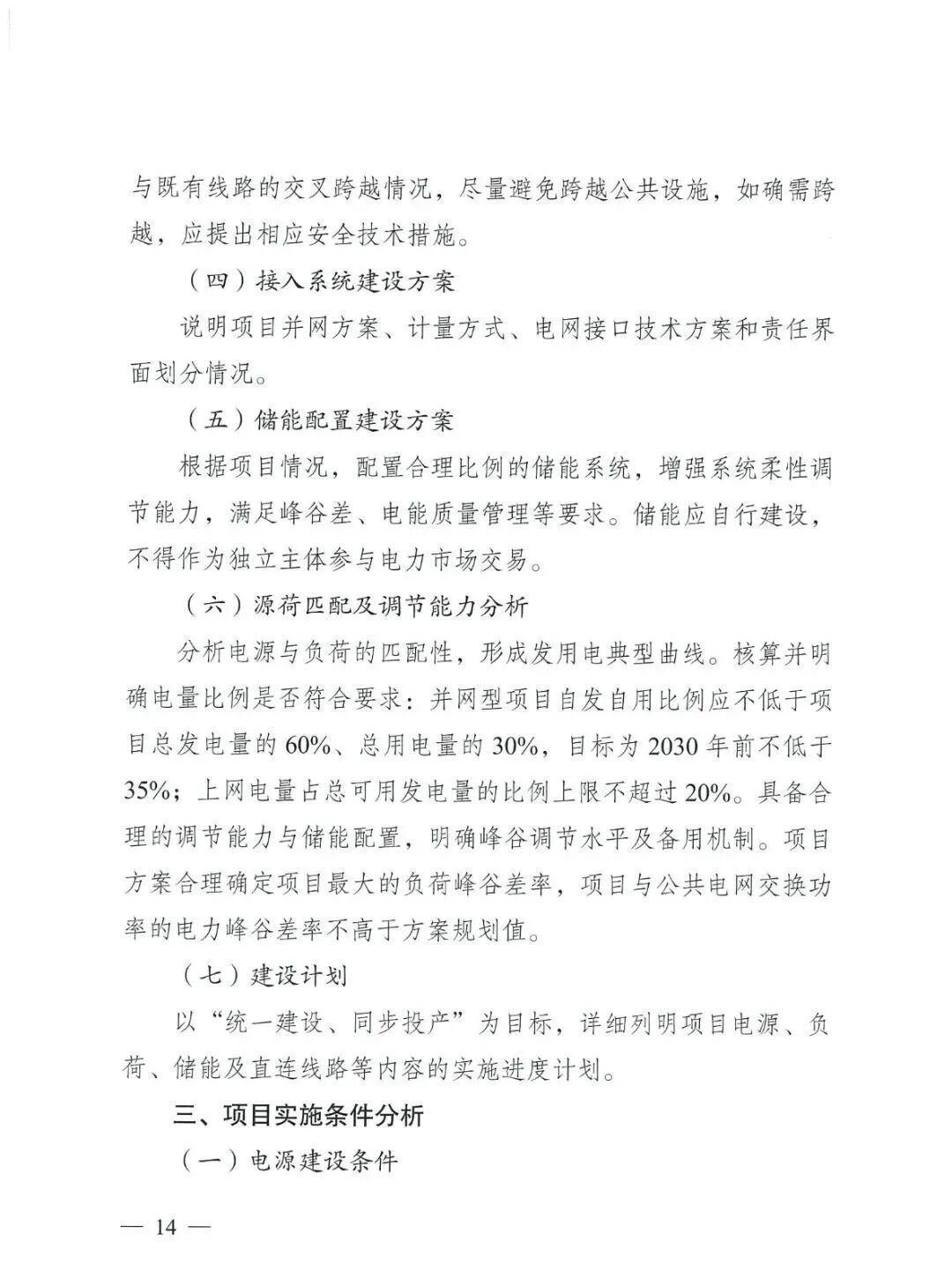 文件要求,并网型绿电直连项目应按照"以荷定源"原则,科学确定新能源电源类型、装机规模和储能规模,支持"整体自发自用为主,余电上网为辅"模式。项目新能源年自发自用电量占总可用发电量的比例应不低于60%,占总用电量的比例应不低于30%,并不断提高自发自用比例,到2030年不低于35%。上网电量占总可用发电量的比例不超过20%。