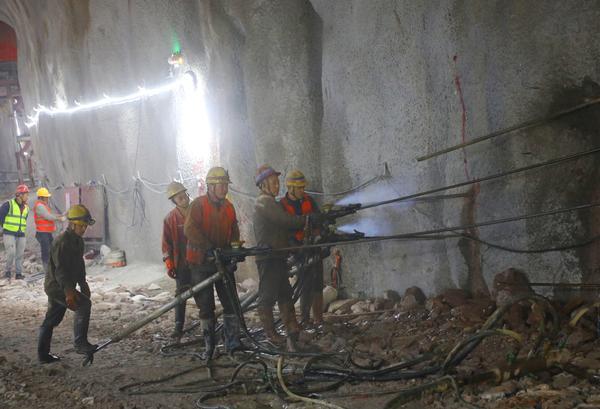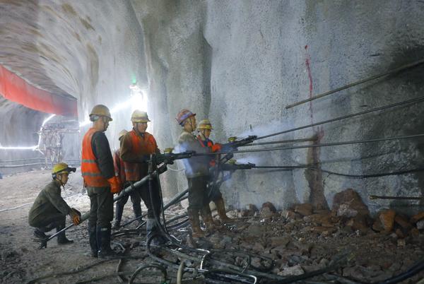 2026年3月10日,位于安徽省芜湖市弋江区峨桥镇的安徽华电芜湖西形冲120万千瓦抽水蓄能电站项目建设工地,工人在进厂交通洞内钻孔作业。目前,该项目筹建期通风兼安全洞、进厂交通洞已全线贯通,为主体工程开工建设打下了坚实基础。