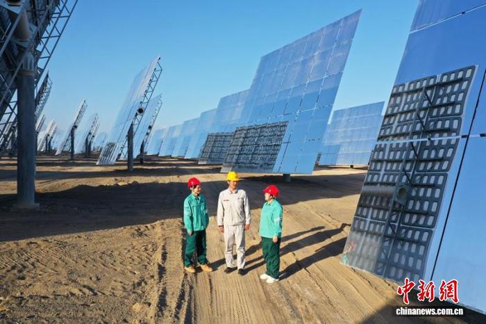 国网吐鲁番供电公司员工走访服务唐山海泰1吉瓦“光伏+光热”一体化项目。蔡俊杰摄