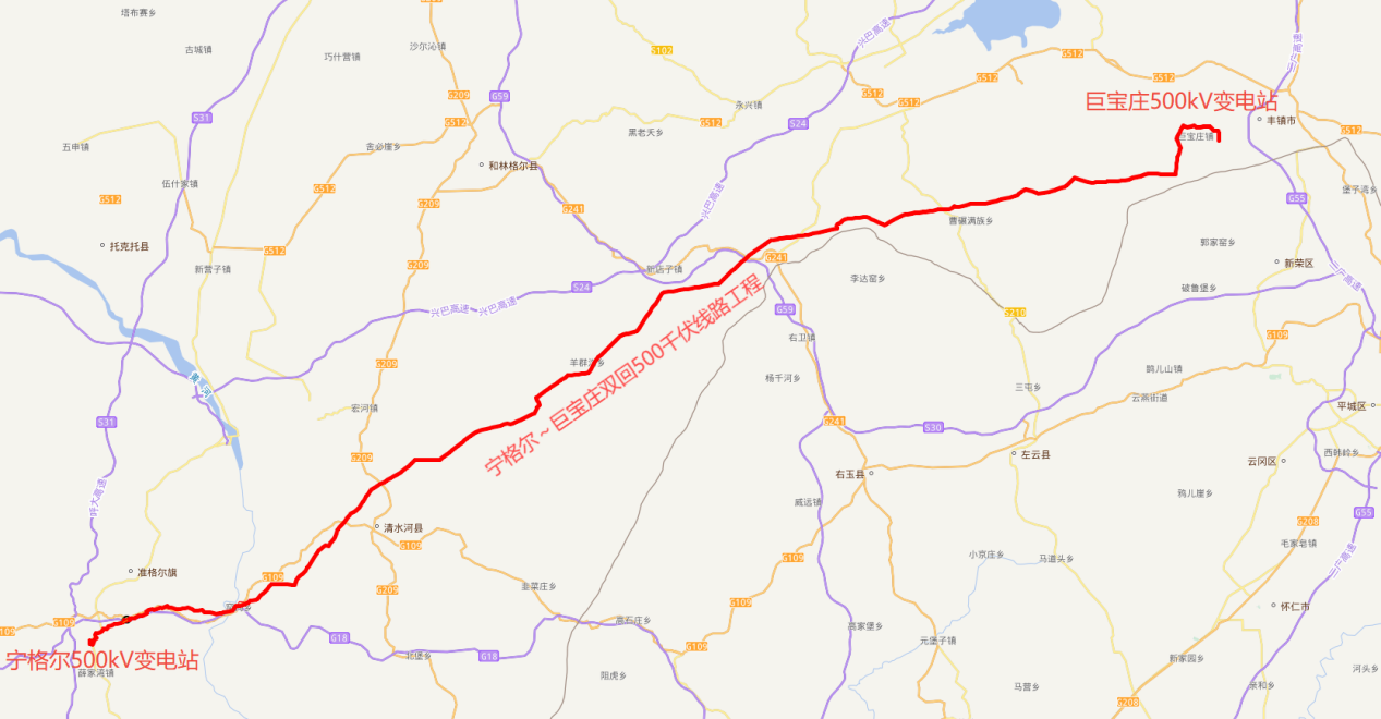 宁格尔-巨宝庄双回500千伏线路工