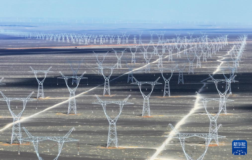 “疆电入渝”工程起于新疆哈密巴里坤换流站,终于重庆渝北换流站,途经新疆、甘肃、陕西、四川、重庆五个省区市,线路全长2290千米。(张利民 摄)