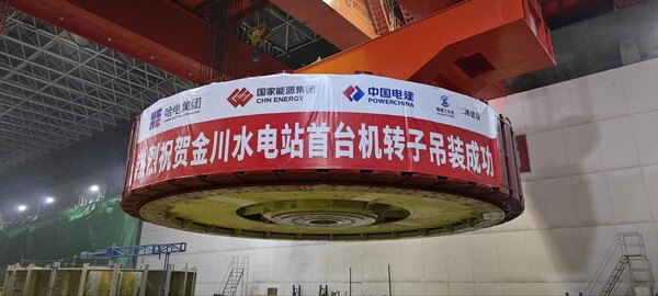 5月20日,由中国电建西北院承担勘测设计、水电七局承建的大渡河金川水电站首台机组(4号机)转子顺利吊装就位,标志着工程建设又完成一个重大目标节点,为实现首台机组投产发电奠定了坚实的基础。