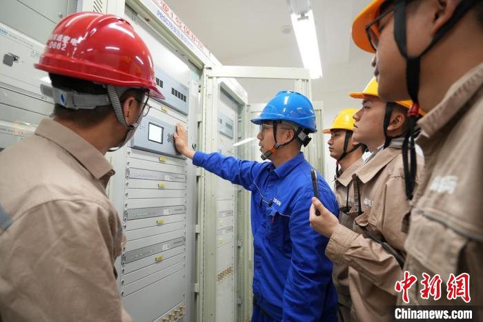眉山西500千伏变电站内工程技术人员观察投运情况。牟雯雯 摄
