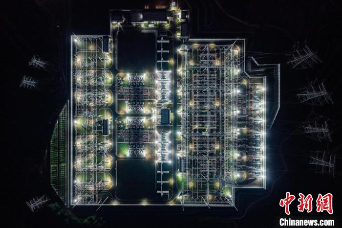 航拍夜色中的眉山西500千伏输变电工程。杨昌建 摄