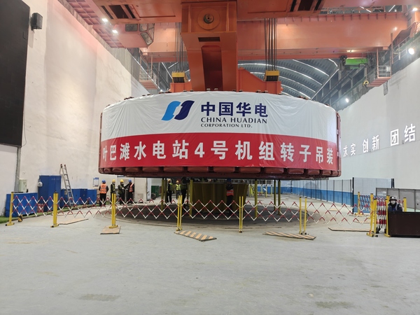 6月13日,叶巴滩水电站首台(4号)机组转子吊装就位,标志电站进入机电安装冲刺阶段,为年底首批机组投产发电奠定坚实基础。
