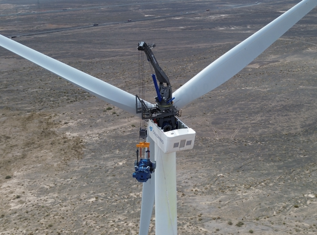 近日,金风科技在甘肃柳园试验风电场顺利完成我国首个“风机大部件免主吊更换”智能设备测试,使用金风自主研发的“自提升智能设备”,完成了GWH204-6.7MW机组齿轮箱与发电机的高空拆装验证。依托该设备,未来风电机组大部件更换将大幅减少对大型吊装设备的依赖,预计降低大部件更换运维成本达50%。