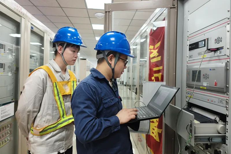 ▲国网四川电力运维人员在500千伏月城变电站调试控保设备