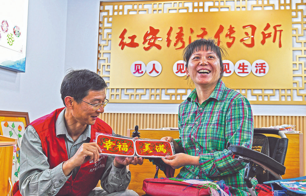 从17岁时高位截瘫“以为一辈子也就这样了”,到成为国家级非遗项目红安绣活省级代表性传承人,48岁的席和玉说“没敢想日子还能过成这样”。
