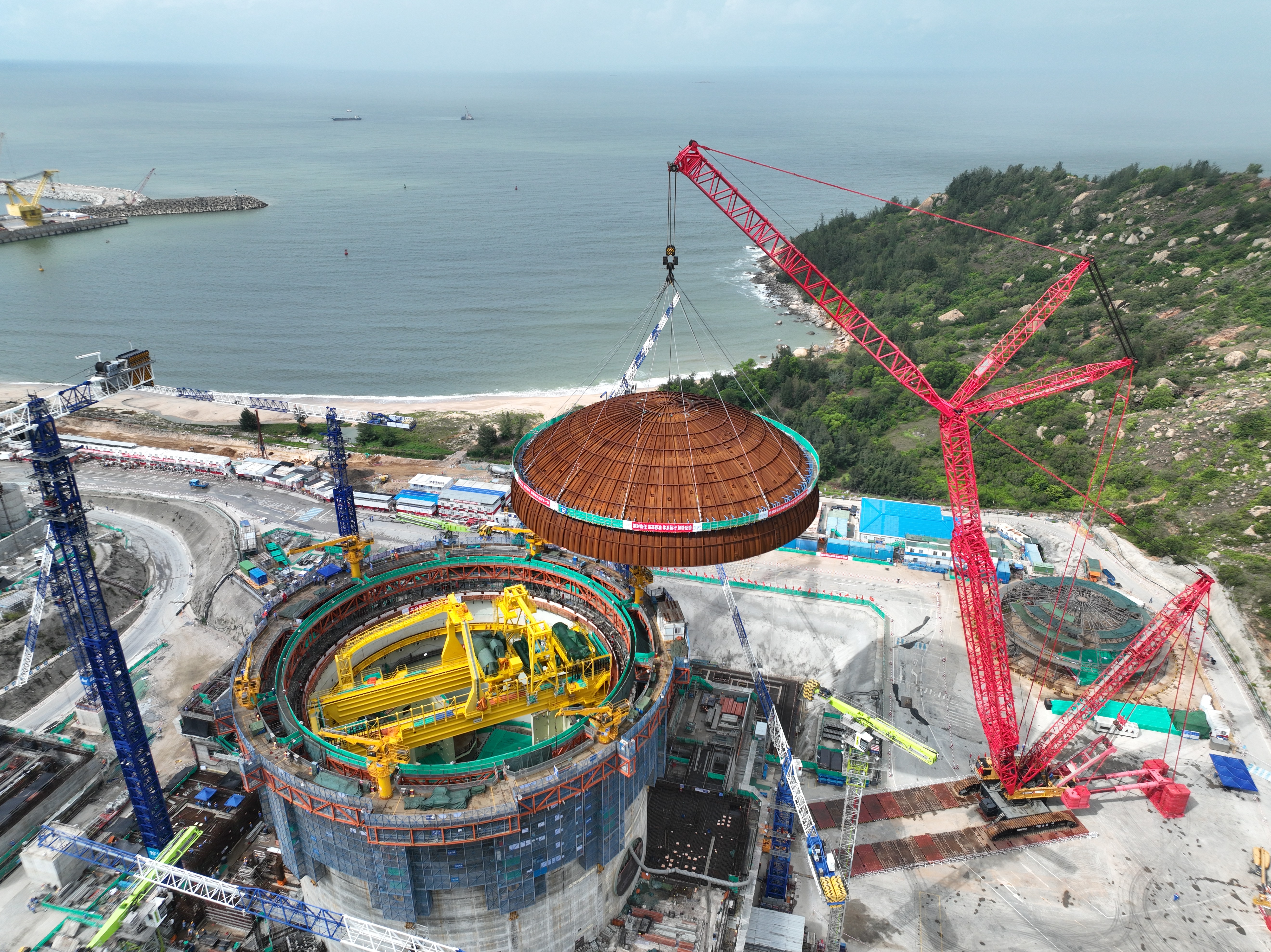 中国能源新闻网讯(记者白宇)7月14日,中广核广东陆丰核电6号机组穹顶成功吊装就位,标志着该台“华龙一号”核电机组反应堆厂房成功封顶,工程建设正式由土建施工阶段全面转入设备安装阶段。