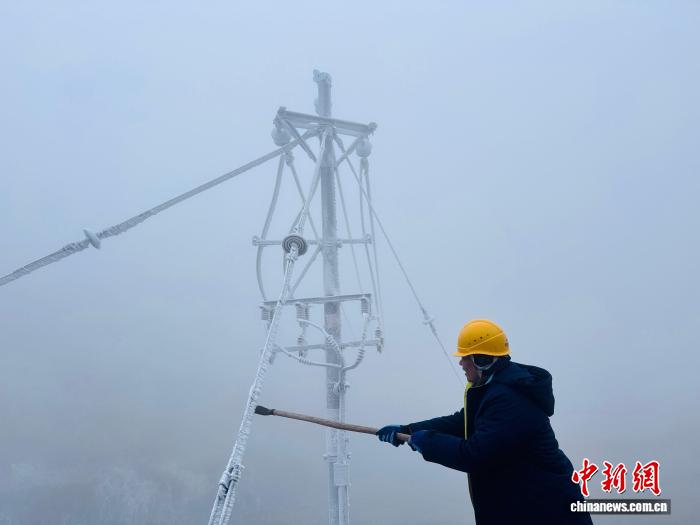 21日,南方电网广东清远连州供电局运维人员对10千伏潭岭线开展除冰。广东电网公司供图
