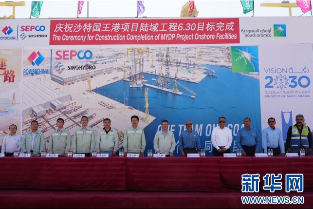 沙特阿拉伯国家石油公司(沙特阿美公司)与中国电建集团山东电力建设有限公司(山东电建)近日在沙特萨勒曼国王国际综合港务设施项目(以下简称沙特国王港项目)现场举行该项目陆域工程全面完成庆祝仪式。