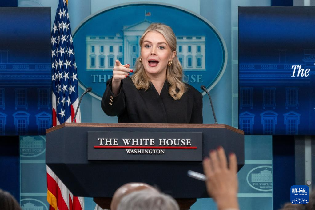 12月11日,在美国首都华盛顿白宫,白宫新闻秘书卡罗琳·莱维特出席记者会。新华社发(李源清摄)
