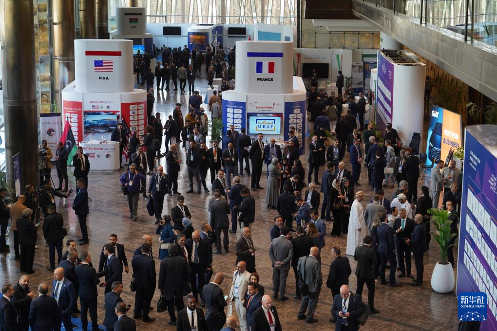 这是1月24日在利比亚首都的黎波里拍摄的第四届利比亚能源与经济峰会会场。新华社发(哈泽姆·图尔基亚摄)