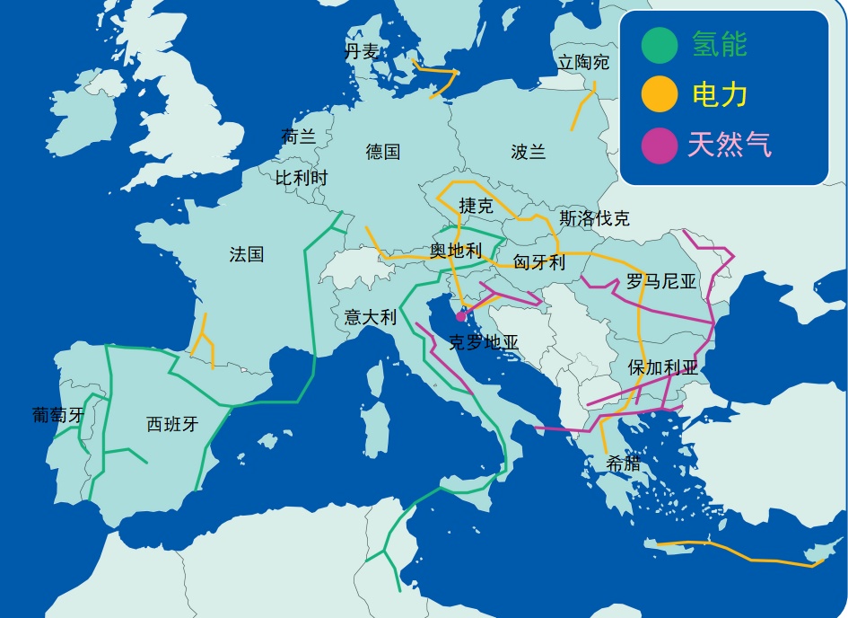 氢能走廊类项目(2项)。其中,南欧氢能走廊项目(SHC)连接突、意、奥、德跨区输氢管网;西南氢能走廊(SWHC)连接葡萄牙与德国输氢管网,到2030年每年输送200万吨可再生氢能。