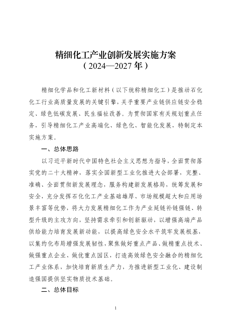 工业和信息化部等九部门关于印发《精细化工产业创新发展实施方案(2024—2027年)》的通知