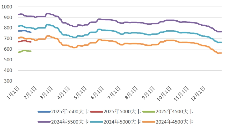 港口市场方面,贸易商积极清仓,低价甩货,但临近春节沿海电厂采购节奏放缓,询货问价明显减少,仅少量低价采购为主,现货成交价格本期前半段延续小幅下行。本期后半段,在今年首场寒潮将影响全国所有省份的预警下,港口现货成交价格止跌企稳,但实际成交量依旧偏少。