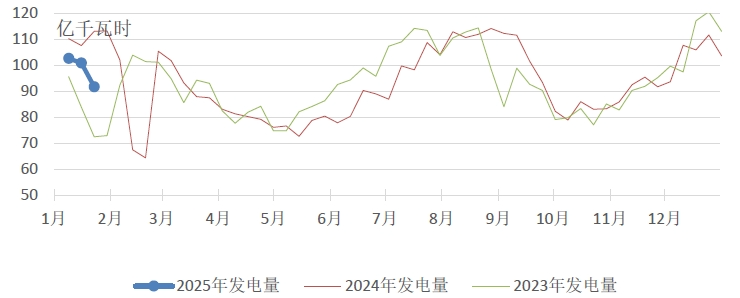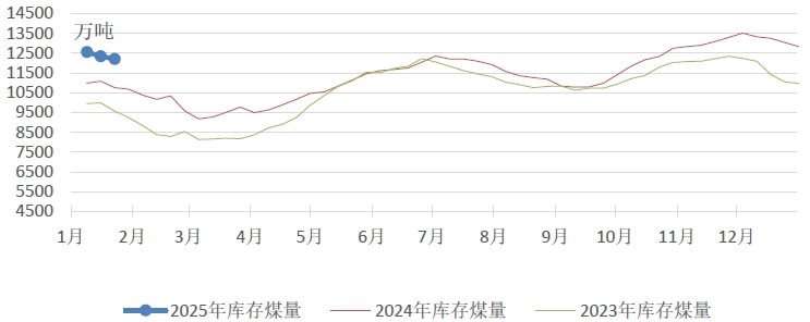 根据中电联电力行业燃料统计,截至1月23日,纳入统计的发电集团燃煤电厂本月累计发电量同比下降10.4%,耗煤量本月累计同比下降8%。燃煤电厂煤炭库存高于去年同期1446万吨,库存可用天数较上年同期升高4.1天。
