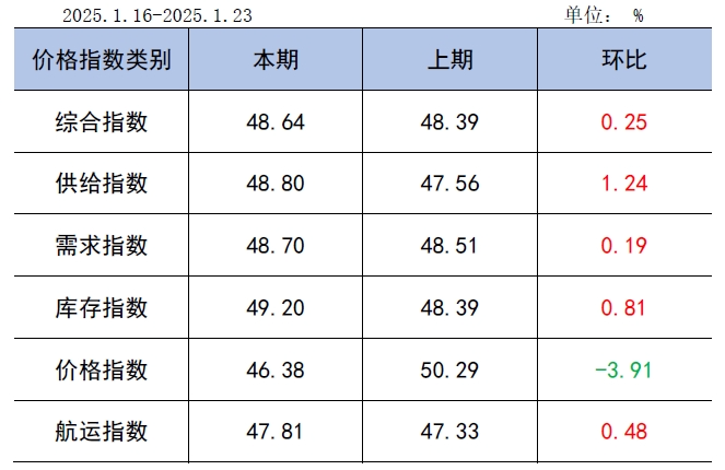 CECI采购经理人指数连续4期处于收缩区间,市场活跃度持续趋冷。其中,供给分指数连续4期处于收缩区间,表明电煤供给量继续下降,降幅有所扩大。需求分指数连续4期处于收缩区间,表明电煤需求量继续下降,降幅有所扩大。库存分指数连续4期处于收缩区间,表明电煤库存量继续下降,降幅有所收窄。价格分指数连续2期处于收缩区间,表明电煤价格继续下降,降幅有所扩大。航运分指数连续8期处于收缩区间,表明电煤航运价格继续下降,降幅有所扩大。