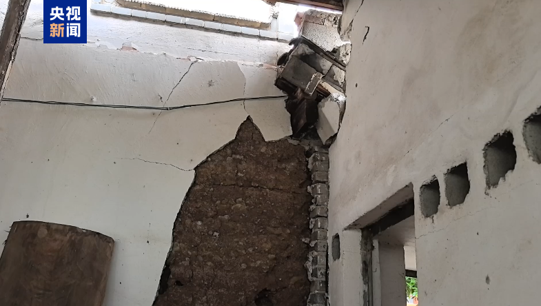 4月24日0时8分洱源县牛街乡发生4.8级地震,震源深度10千米,洱源县9乡镇均有震感。从下列图片中,可以清晰看到墙体开裂。
