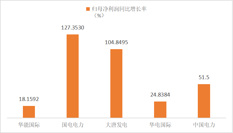 在业绩成长性方面,五大企业全部实现盈利正增长。其中国电电力、大唐发电上半年归母净利润同比增幅最大,分别为127.35%、104.85%,双双翻倍。