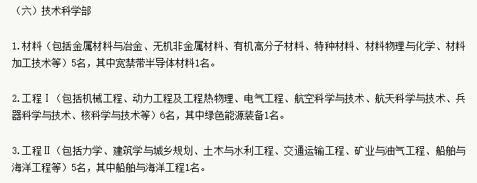 中国科学院2025年院士增选指南显示,技术科学部工程Ⅰ(包括机械工程、动力工程及工程热物理、电气工程、航空科学与技术、航天科学与技术、兵器科学与技术、核科学与技术等)将增选6名院士,其中绿色能源装备1名。工程Ⅱ(包括力学、建筑学与城乡规划、土木与水利工程、交通运输工程、矿业与油气工程、船舶与海洋工程等)将增选5名院士,其中船舶与海洋工程1名。