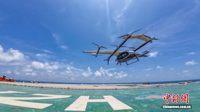 8月3日,全球首次2吨级eVTOL海上石油平台飞行完成。(中国海油深圳分公司供图)
