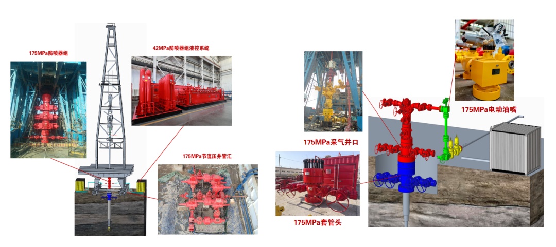 中国石油突破特高压井口装备选材、设计、加工制造、评测等技术难题,自主研制175兆帕特高压井口系列装备,包括“175兆帕采气井口、防喷器组及液控系统、节流压井管汇、套管头、电动油嘴、抗硫地面测试设备”六大件装备,性能达到国际先进水平,实现核心技术自主可控。
