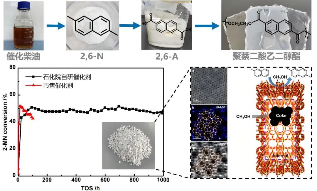 中国石油围绕重芳烃高值化利用开展科研攻关,形成催化柴油制备萘环芳烃成套技术,打通原料深加工、稠环芳烃烷基化、异构化反应与产品纯化等流程,实现关键催化材料全自主研制,完成百吨级规模实验验证,解决了高性能聚酯材料原料“卡脖子”难题,为劣质石化原料利用提供解决方案。
