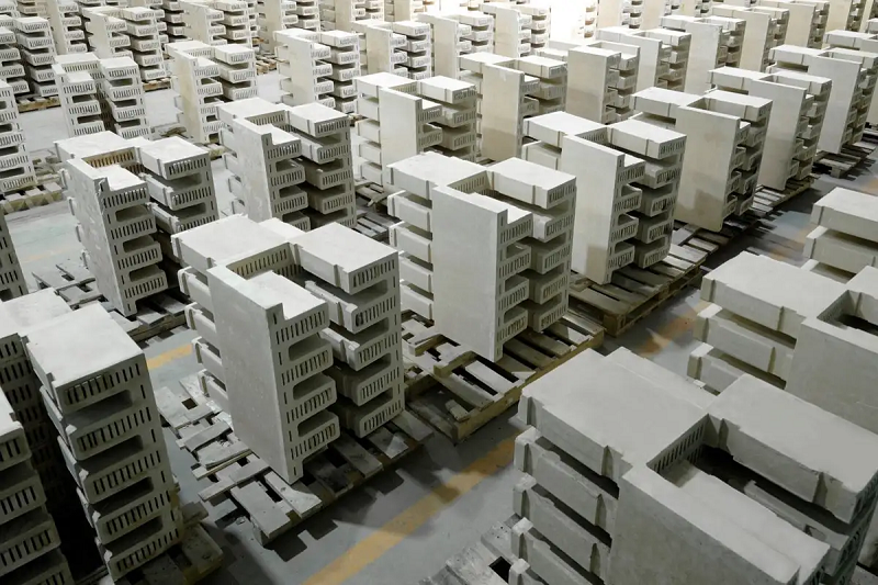 Rondo能源公司制成热电池的砖块在生产设施内整齐排列。图片来源:《新科学家》网站