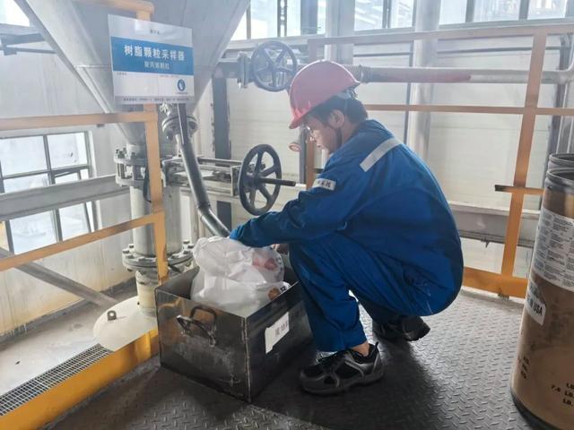 聚丙烯装置操作人员正在对新产品采样。