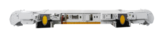 该采煤机融合了悬机身和常规双截割电机横跨刮板机上方总体结构的优势,解决了低采高与采高范围小之间的突出矛盾;创新了中压变频技术,有效缩短机身长度,适应工作面起伏能力强;集成了先进惯性导航、规划截割等系统,极薄煤层智能开采水平高。