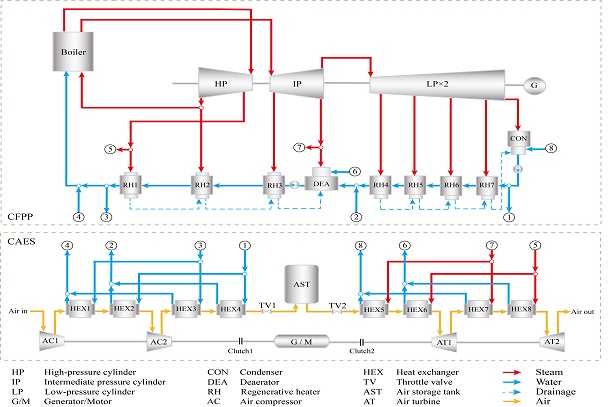 6月22日,低碳院在新一代煤电耦合物理储能领域取得重要研究进展,成功构建了一种新型高效能量梯级利用的燃煤电厂耦合物理储能系统,通过能量、㶲、经济、环境综合分析方法,显著提高了燃煤机组的运行灵活性和系统经济性。相关研究成果以《基于能量/㶲/经济/环境及运行性能分析的煤电与压缩空气储能耦合提升灵活性研究》为题发表于国际能源领域顶级期刊《Energy》(影响因子9.4)。