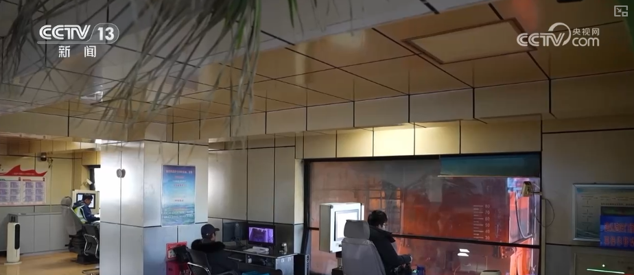 在装车站的操控室内可以更直观感受到“灯泡线”的装车效率。这趟列车正以约1公里每小时的速度缓慢行进,煤炭经过自动称重系统检测后,工人只需按下手柄,就能从上方筒仓精准注入车厢。