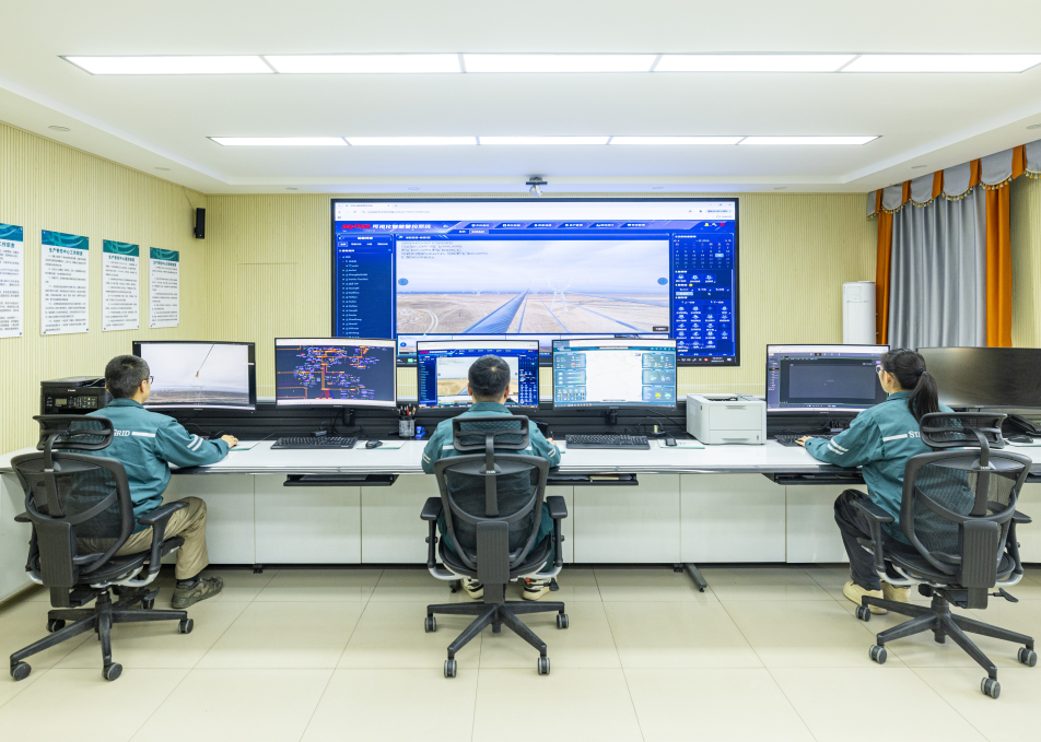 1月16日,新疆送变电公司员工在生产管控中心观测“观冰精灵”回传画面。王佳雪摄