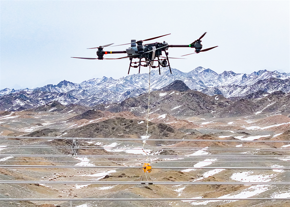 为保障作业安全高效推进,国网新疆电力提前开展现场勘查、空域审批等工作,制定专项安全管控方案,组织运维人员依托大载重无人机协同作业,攻克高海拔、低温严寒及微地形带来的作业难题,历时两天完成“观冰精灵”智能监测装置的安装与调试,确保设备精准投用。